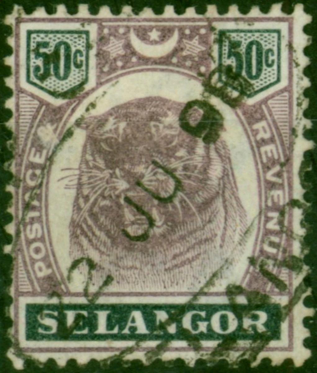 Selangor 1896 50c Dull Purple & Greenish Black SG59 Fine Used Fiscal Cancel