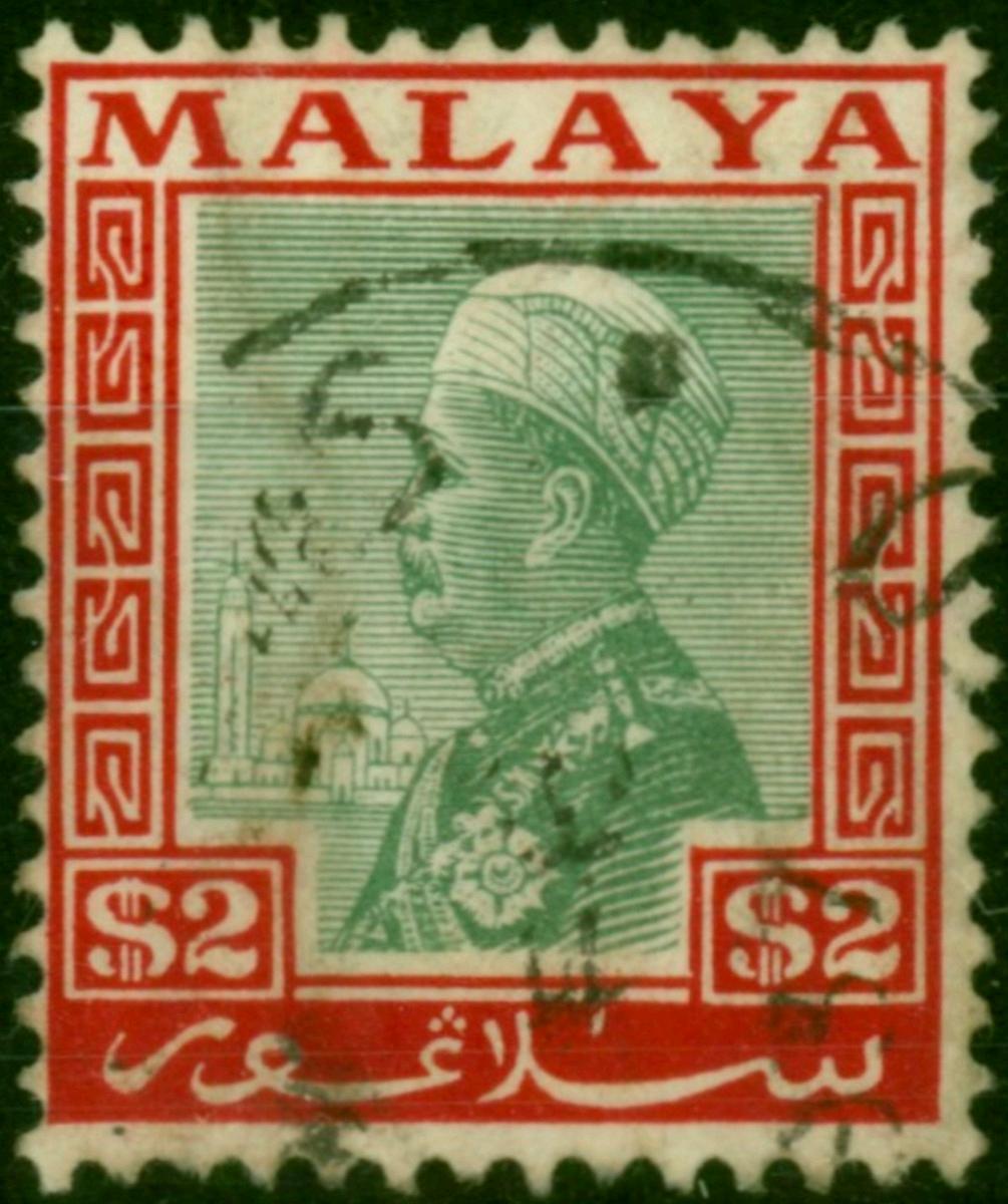 Selangor 1936 $2 Green & Scarlet SG84 Fine Used