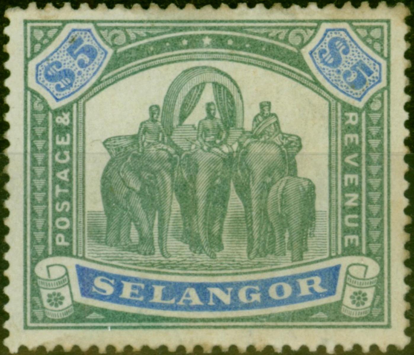 Selangor 1889 $5 Green & Blue SG64 Good MM