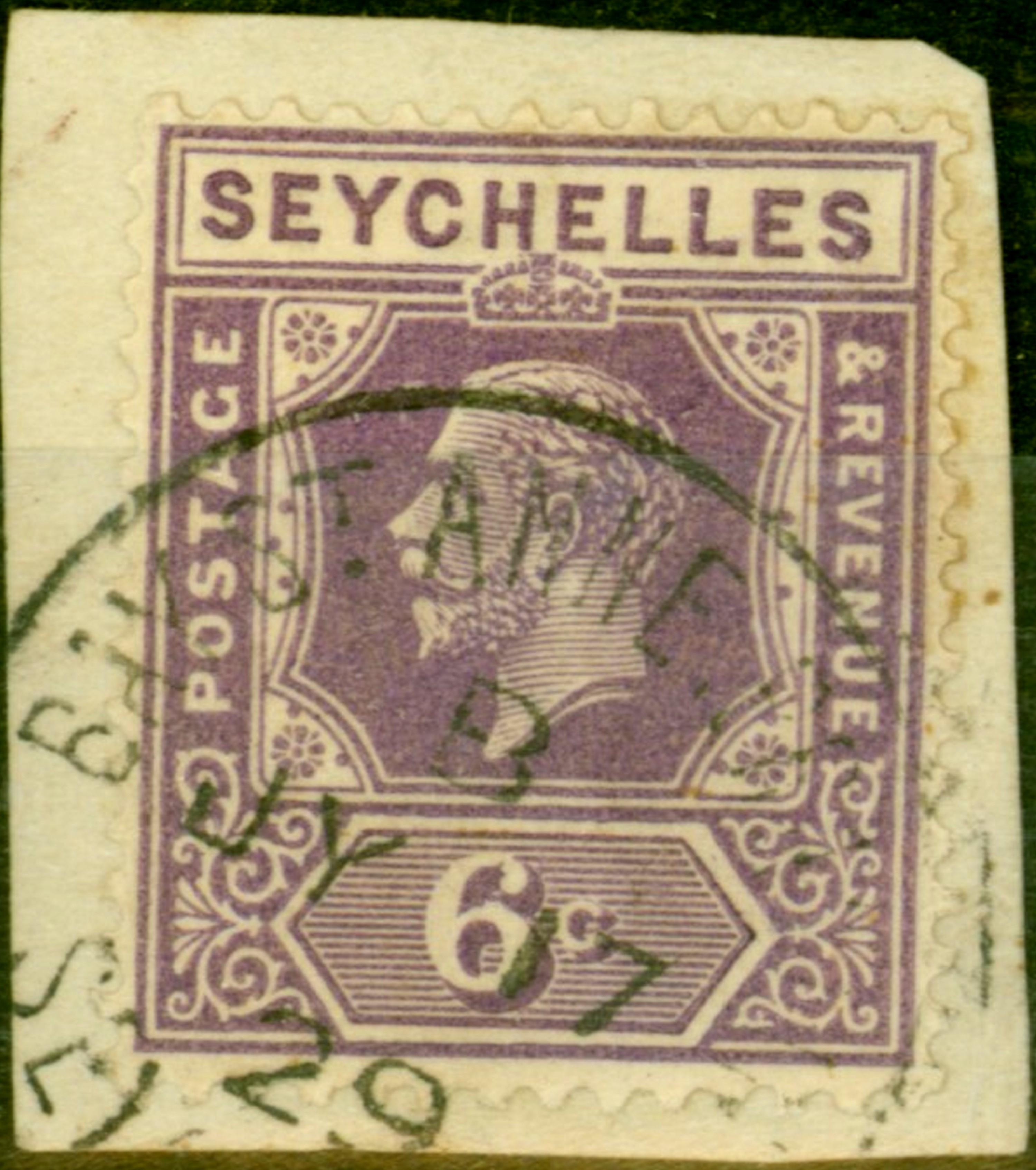Seychelles 1922 6c Deep Mauve SG105 V.F.U ST ANNES CDS on Small Piece