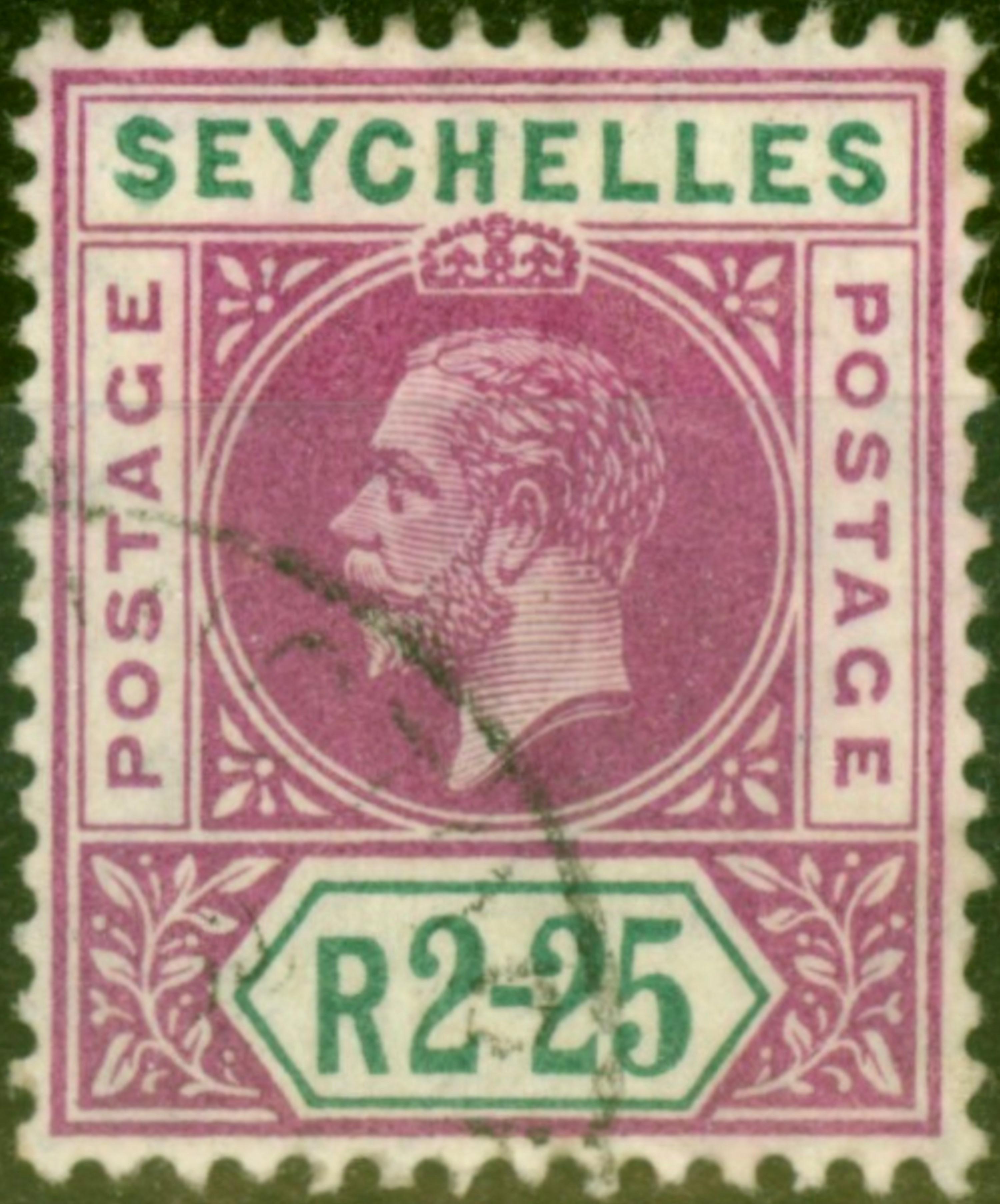 Seychelles 1918 2R25 Yellow-Green & Violet SG96 V.F.U