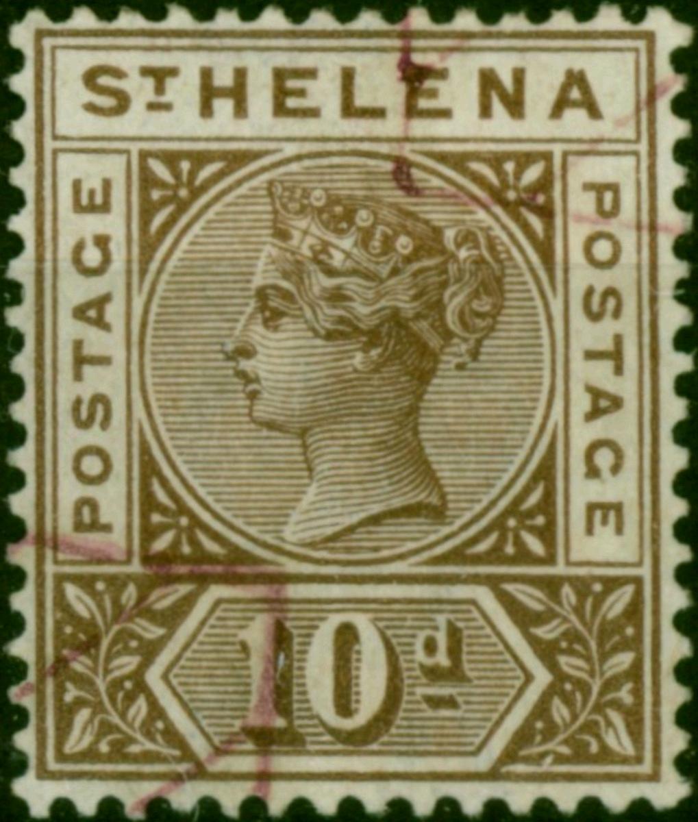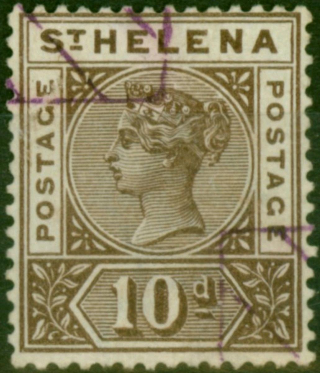 St Helena 1896 10d Brown SG52 V.F.U Remainder Cancel (4)