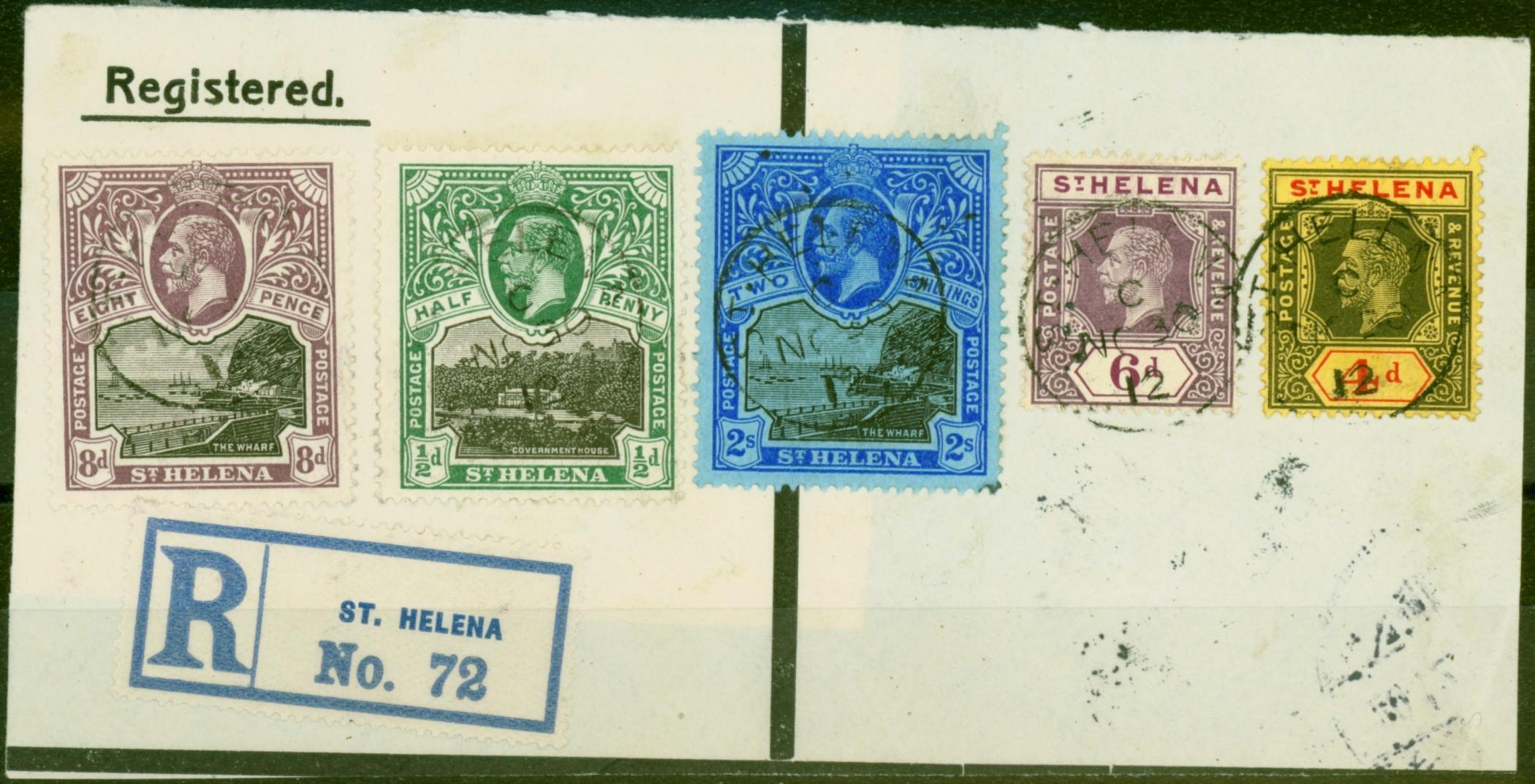 St Helena 1912 SG72, 78, 80 & 84 on Part Reg Cover/Large Piece to Germany