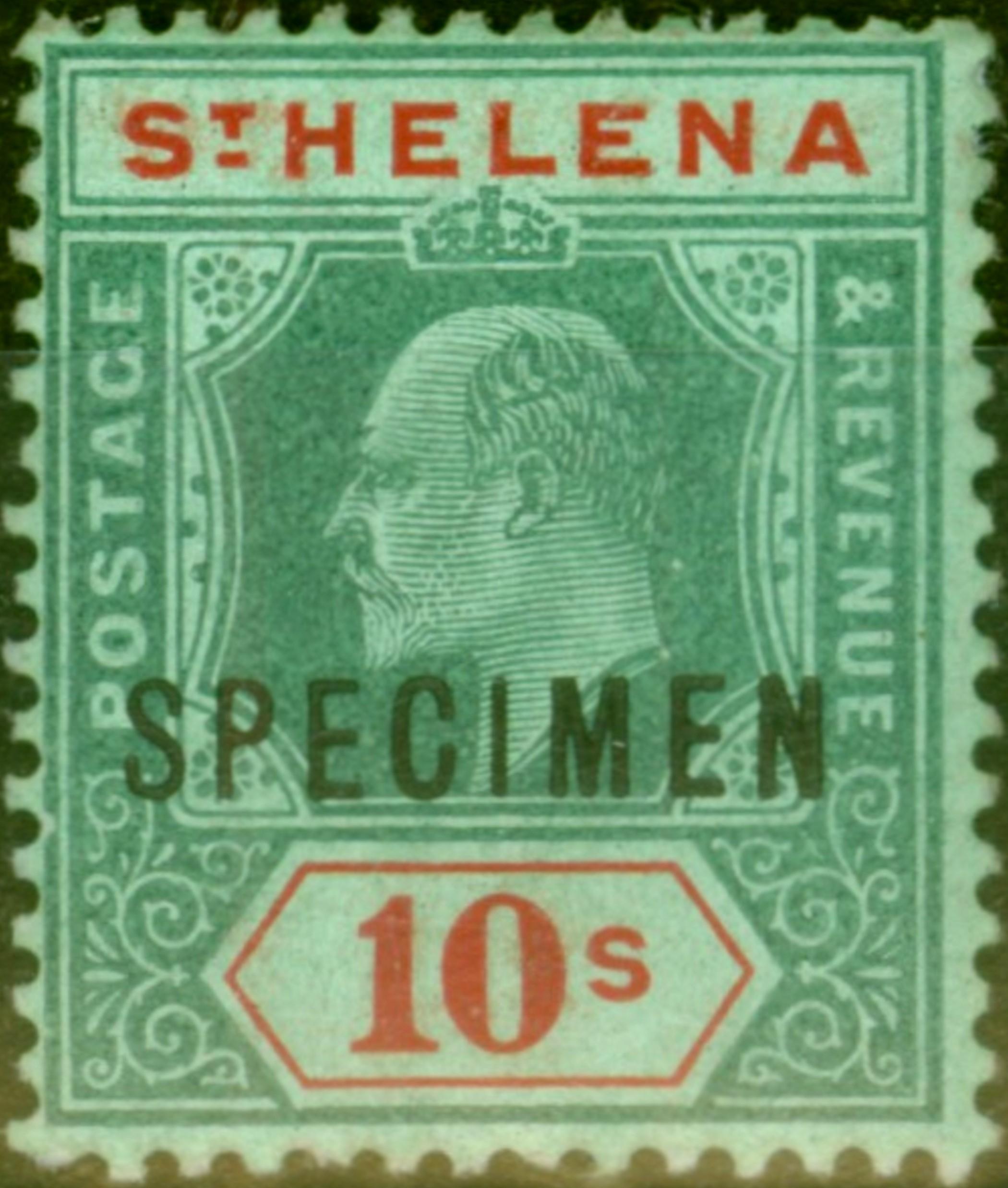 St Helena 1908 10s Green & RedGreen Specimen SG70s Fine MM