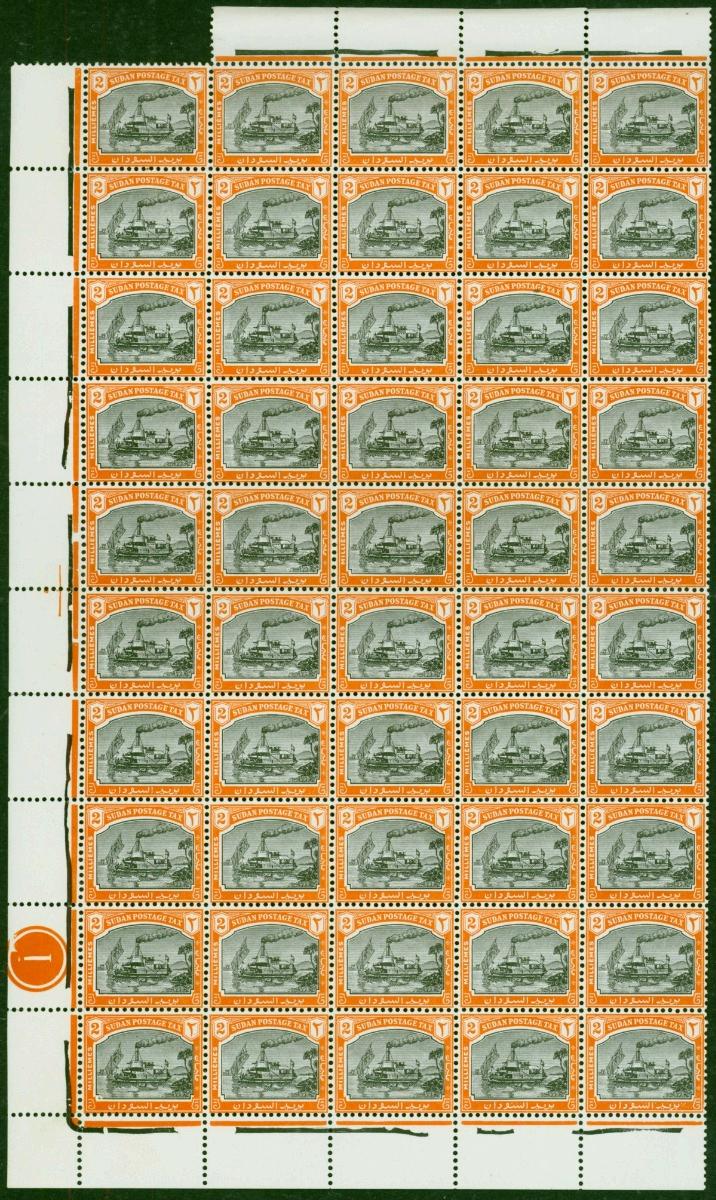 Sudan 1948 2m Black & BrownOrange SGD12 V.F MNH Half Sheet of 50