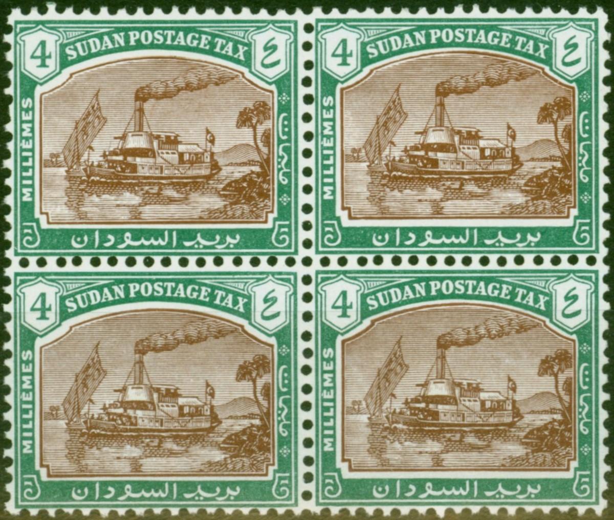 Sudan 1948 2m Black & BrownOrange SGD12 V.F MNH Pl.1 Block of 4
