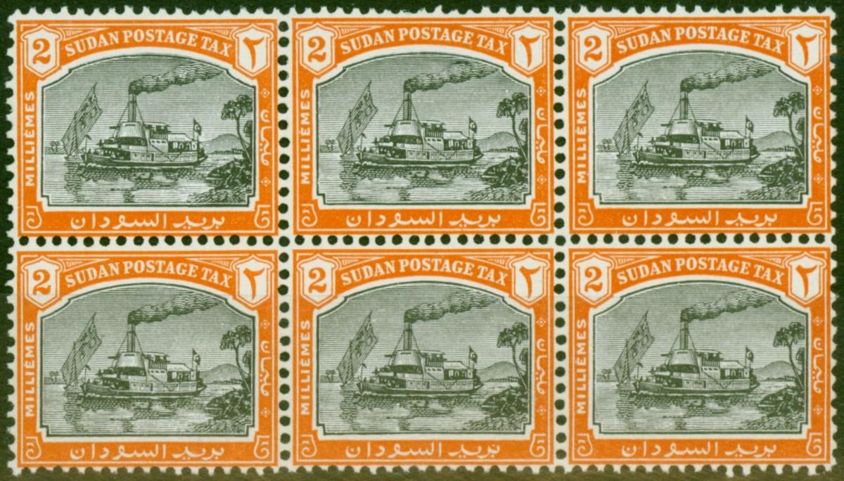 Sudan 1948 2m Black & BrownOrange SGD12 V.F MNH Block of 6