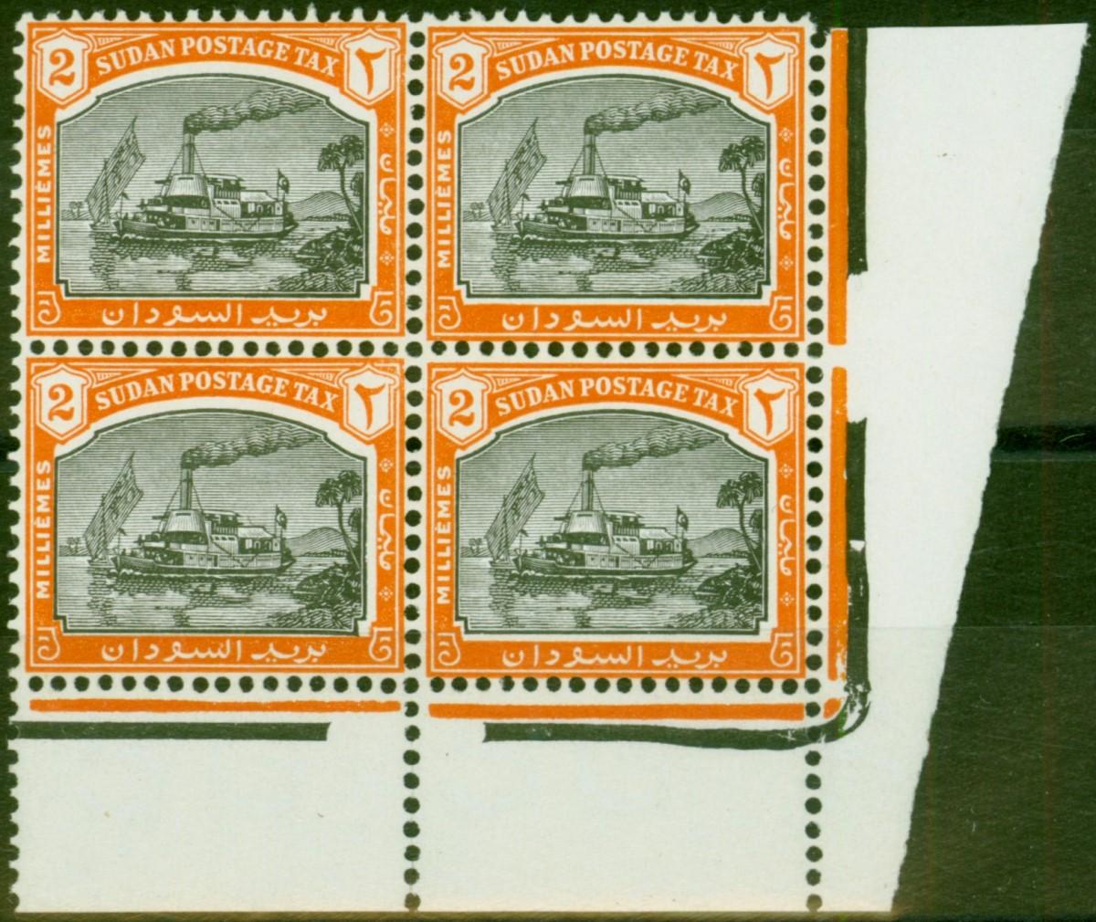 Sudan 1948 2m Black & BrownOrange SGD12 V.F MNH Corner Block of 4