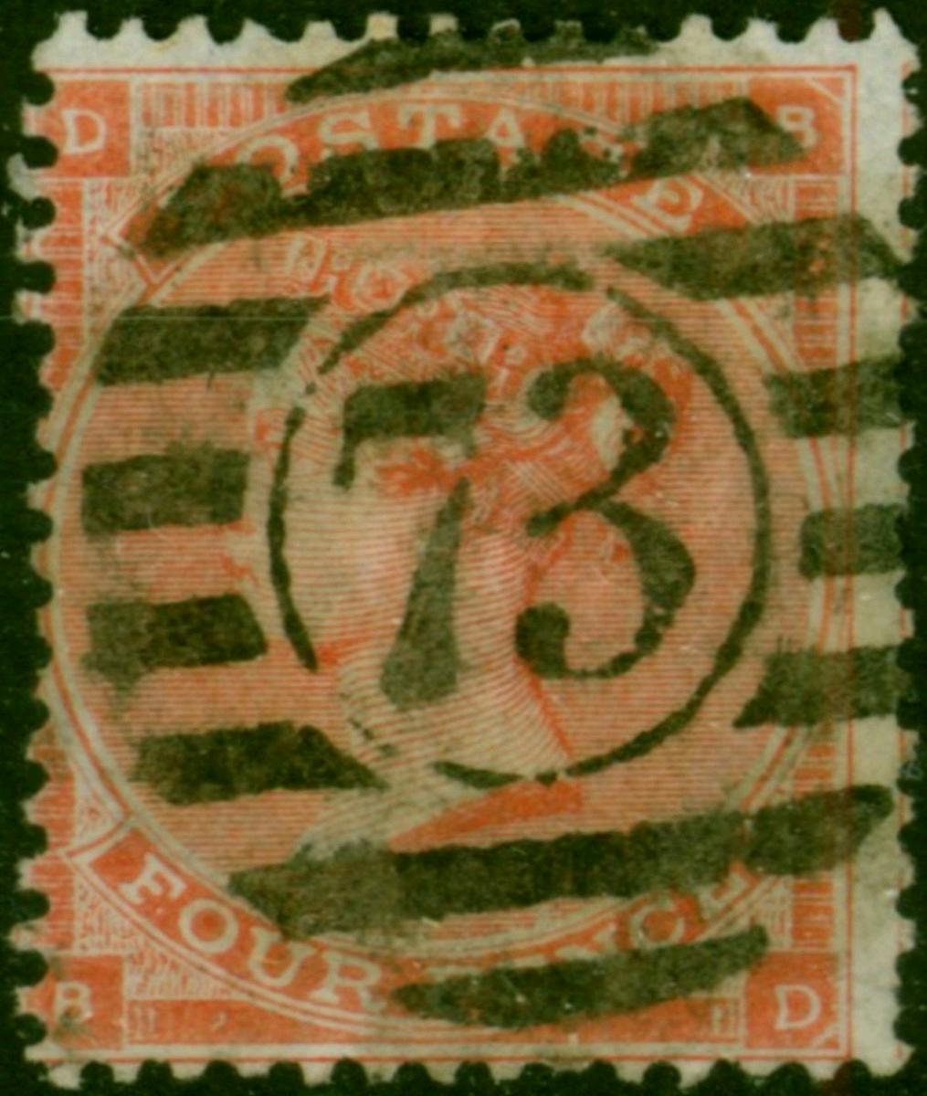 GB 1866 4d Deep Vermilion SG95 Pl.8 Fine Used