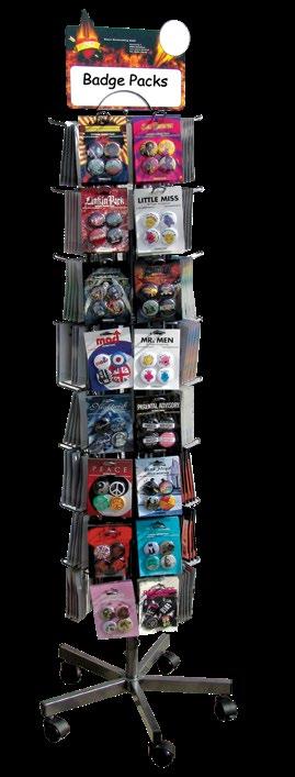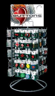 Unsere aktuellen Buttonsortimente bestehen aus je 80 Motiven, präsentiert auf einem drehbaren Thekendisplay.