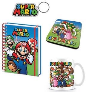 822857 Geschenk-Set Super Mario Geschenkset enthält je 1x Lizenz-Tasse (Ø8,5 H9,5cm), 1x Notizbuch 15x21 cm, 1x Schlüsselanhänger und 1x Untersetzer