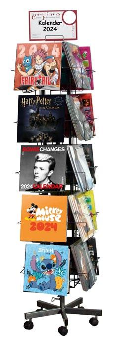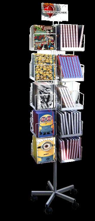 Bei Abnahme von 200 St. stellen wir einen Metall-Warenträger zur Verfügung. Es handelt sich um einen Bodendreher mit Platz für 20 Titel. Die Lieferung erfolgt frei Haus. Alle Kalender sind einzeln nachbestellbar.