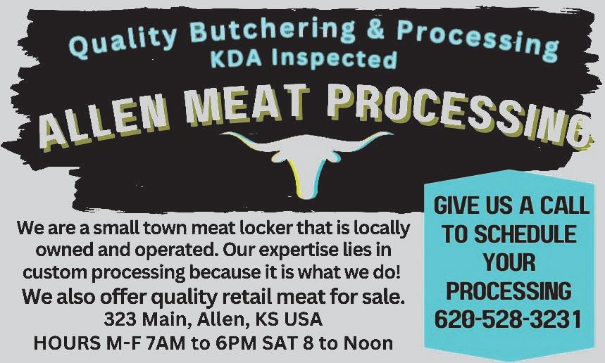 North Lyon County Senior meals are available in Allen for grab and go or home delivery. Meals are available Monday through Friday and must be ordered by 11 a.m. the previous day by calling 620-5283414.