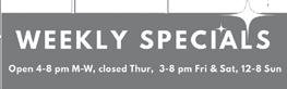 • Lunch - Monday, Wednesday and Fridays - 11 a.m. to 12:30 p.m. Adults are $5 with kids under five eating free. Cash only. Menu is on Facebook.