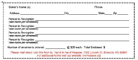The Hartford Food Pantry helps families in need by purchasing Christmas presents for families in the USD 252 school district, Reading and Jacobs Creek area. You can pick up some ornaments (which have gifts that need to be purchased) off the tree at the Christmas Tree Lighting on November 30, at Hartford State Bank, or at Hartford High School. Please help families have a nice Christmas. The gift and ornament can be returned to Hartford High School by December 12. Gifts do not need to be wrapped.