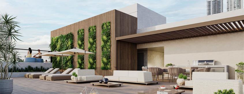 • Piscina Rooftop • Fitness Center • Yoga Deck • Sky Bar • Co-working • Shopping Center • Coliving Lounge
