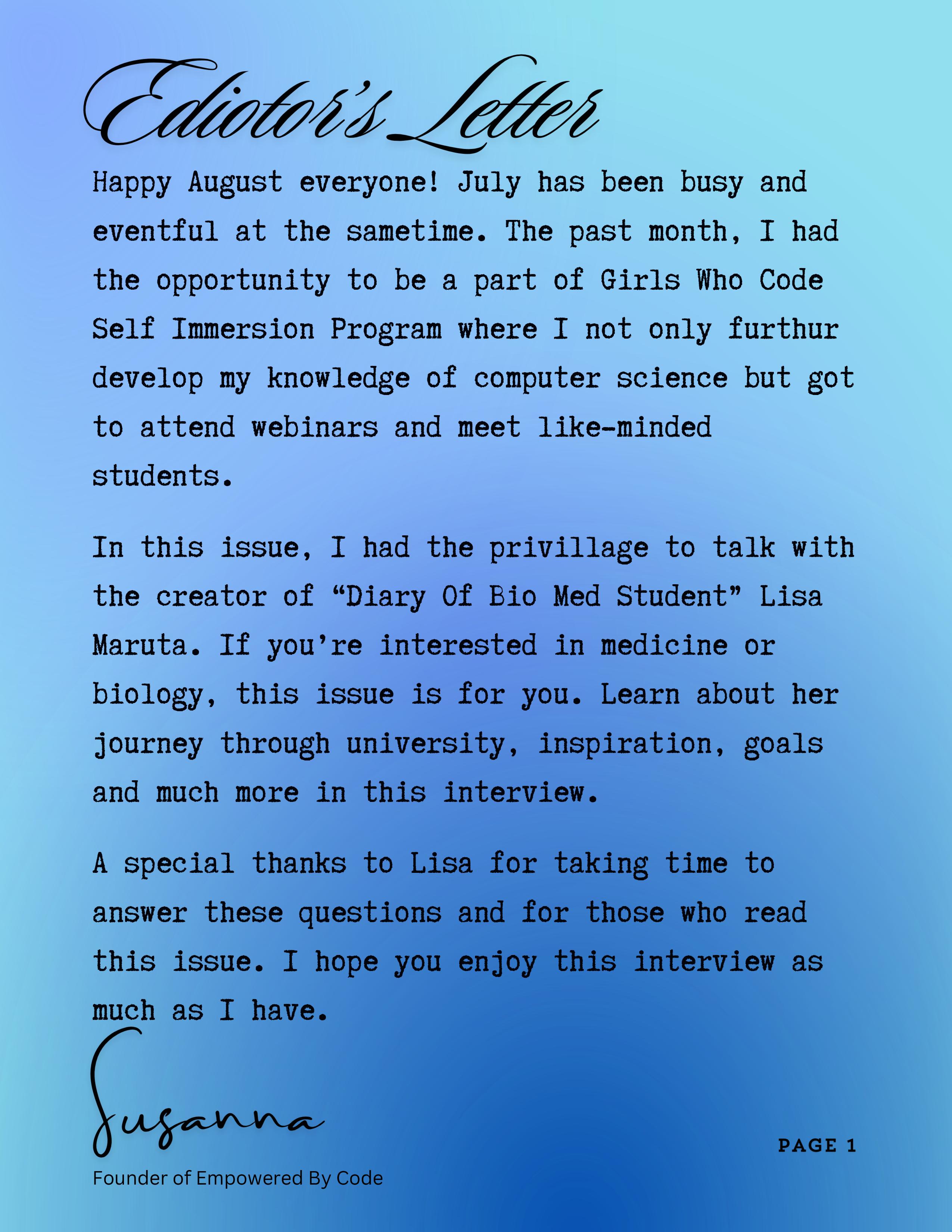 In the 6th issue of Coffee Shop STEM, EBC had the opportunity to interview "Diary of A Bio Med Student" founder and a recent graduate in biomedical science. In this issue, learn about Lisa's journey to biomedical science, passions, inspirations and more about her Instagram project.