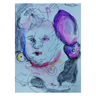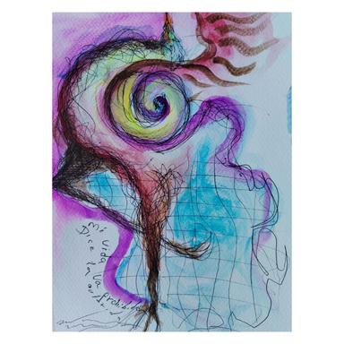 Su producción es mixta, entre collage, tela, ceras, tintas, acuarela, oleo, efectos con objeto y vacios al recortar el papel o la tela