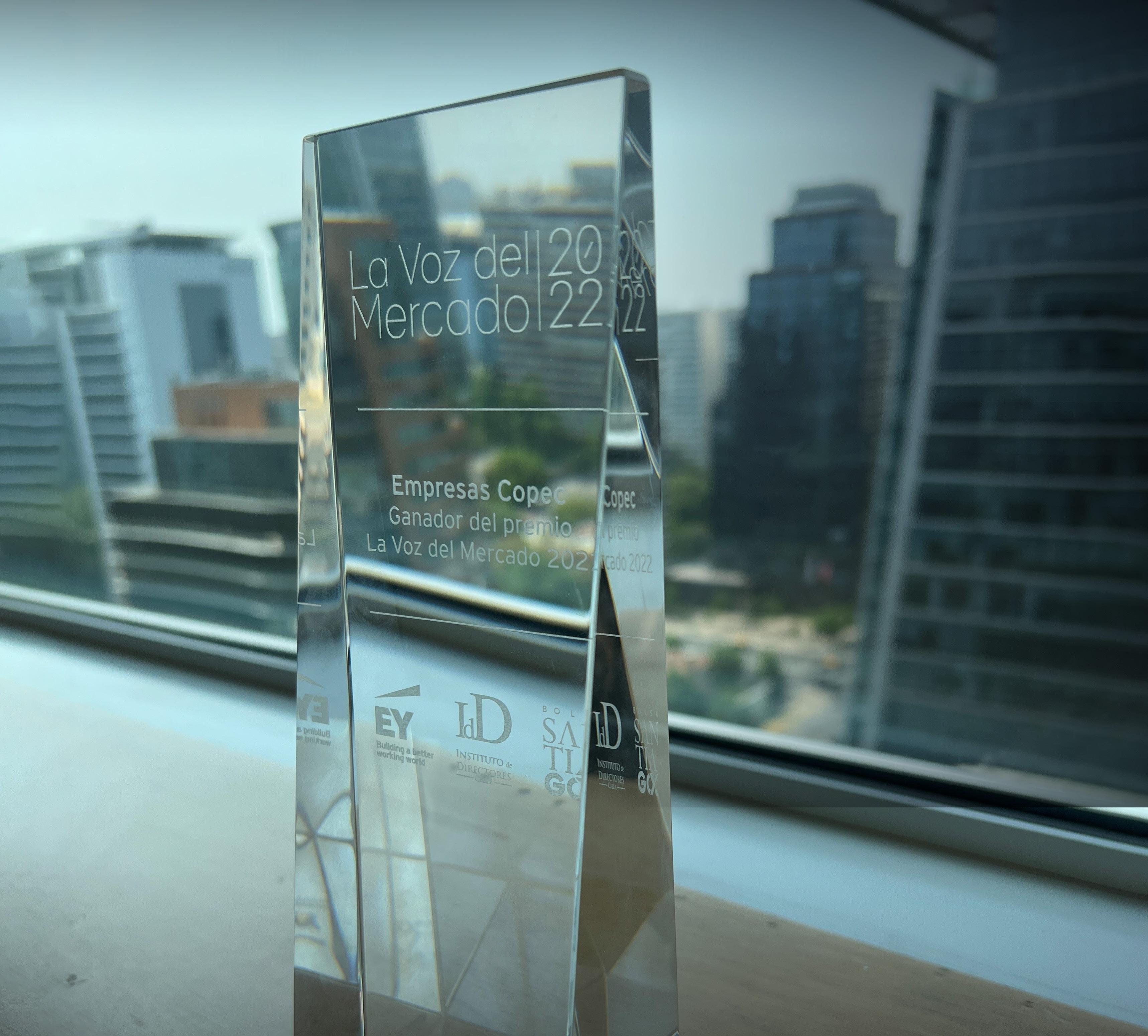 empresas copec obtuvo, por cuarto año consecutivo, el premio “la voz del mercado”, siendo destacada como una de las tres empresas chilenas transadas en bolsa con mejor evaluación en esta materia.