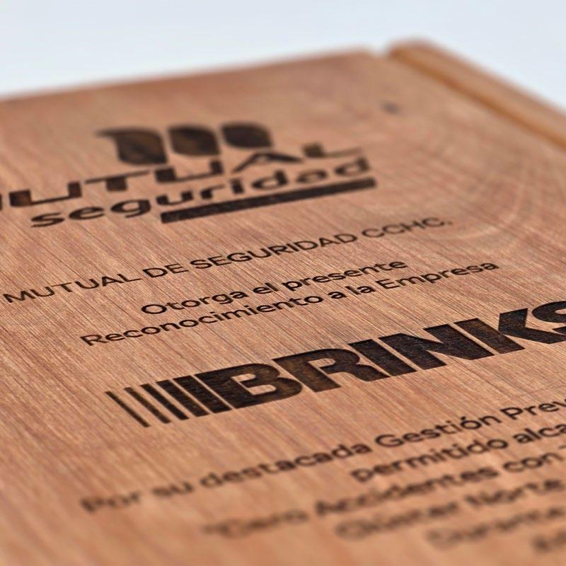 Puede ser grabado láser directamente o con aplicación de placa simil metal, (dorado, plateado, cobrizado) grabado láser