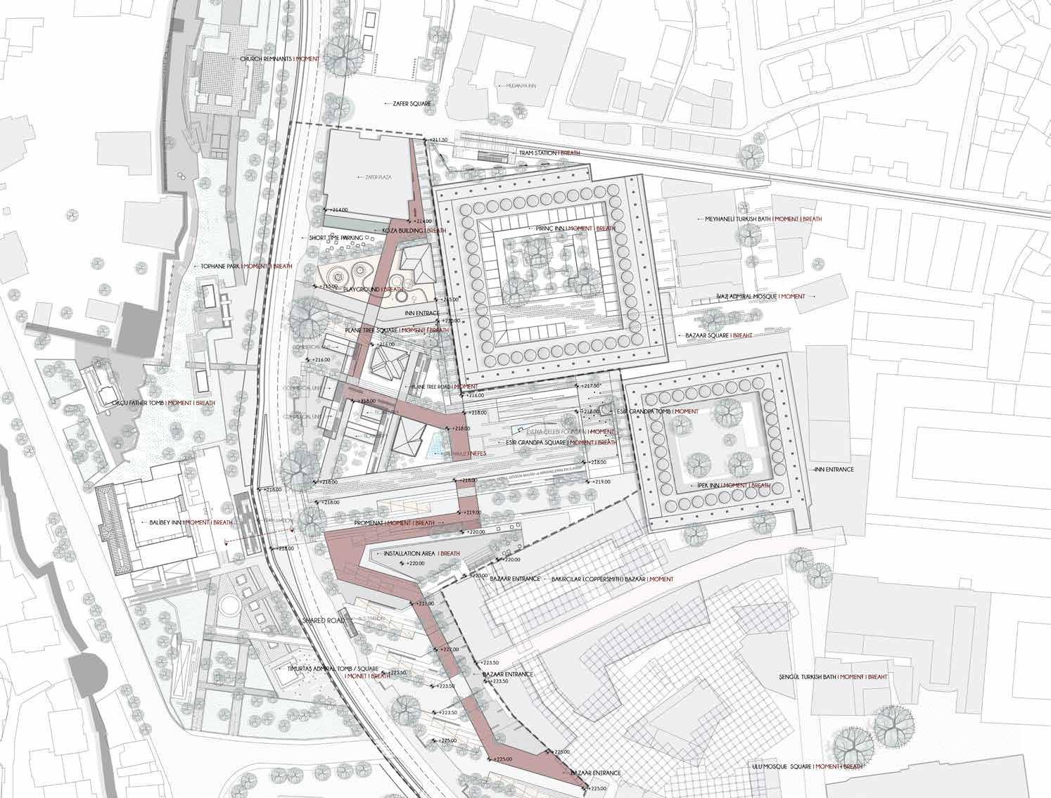 9- With the cultural heritage and user (pedestrian) oriented design approach, a space organization is designed in which the historical identity is brought to the fore, pedestrian continuity is ensured, the focul area and the surrounding spaces are integrated, qualified green areas are suggested, and the commercial-historical function is strongly constructed.