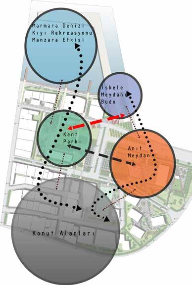 Mudanya, which has a seashore, is suitable for coastal recreation. In the design process, attention has been paid to the city’s relationship with the coast.In this context, the relationship between the pier square and the coast, the relationship between the coast and the city square and the relationship of all these urban organisms with the residential areas are among the basic inputs that constitute the design process. The city square and the city park are also related to the PTT building, which is close to these areas. This relationship is both visual and abstract, and envisages its integration with the main spine of the city.