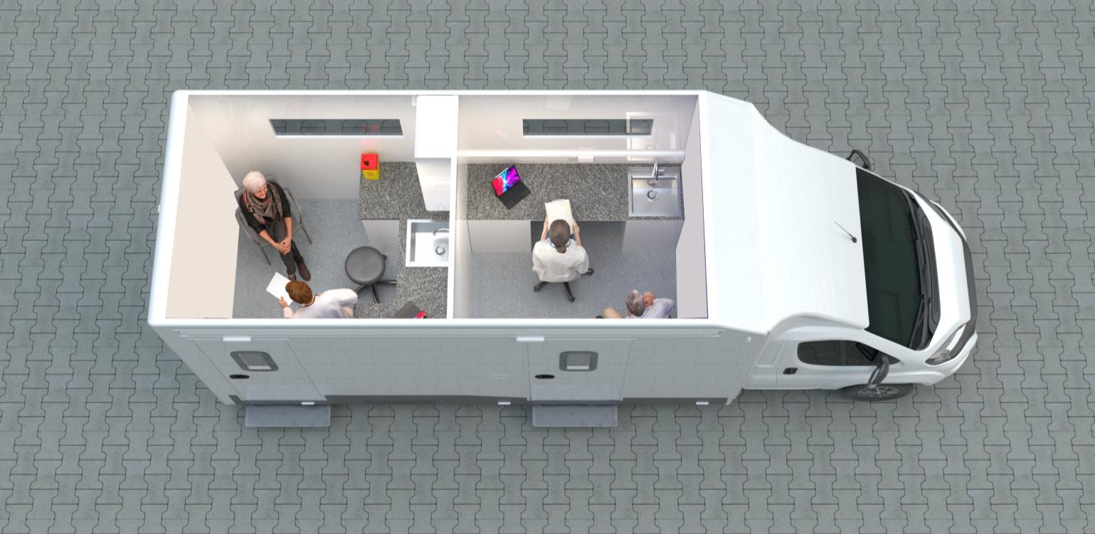 Provides on-the-spot vaccinations, physical health checks, wellbeing, and mental health support