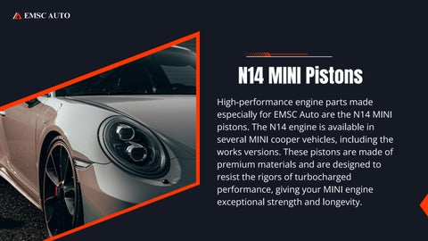 High-performance engine parts made especially for EMSC Auto are the N14 MINI pistons. The N14 engine is available in several MINI cooper vehicles, including the works versions. These pistons are made of premium materials and are designed to resist the rigors of turbocharged performance, giving your MINI engine exceptional strength and longevity.