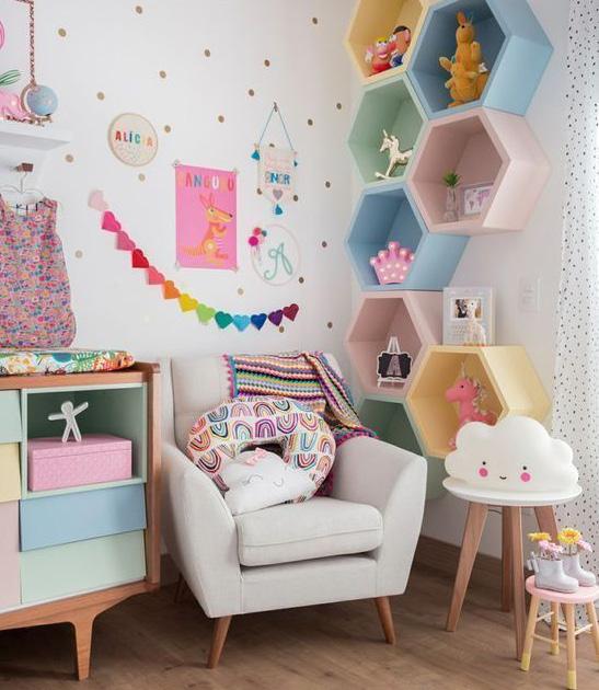 Dengan warna-warna yang tone dengan perpaduan banyak warna pastel membuat anak perempuan suka dengan warnanya, serta berbagai aksesoris yang mendukung dengan warna kamar.
