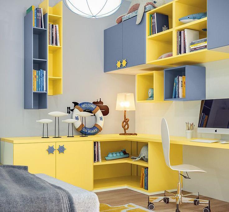Dengan warna-warna yang tone yang simple tidak terlalu banyak perpaduan warna membuat anak laki-laki suka dengan warnanya, serta berbagai aksesoris yang mendukung dengan warna kamar.