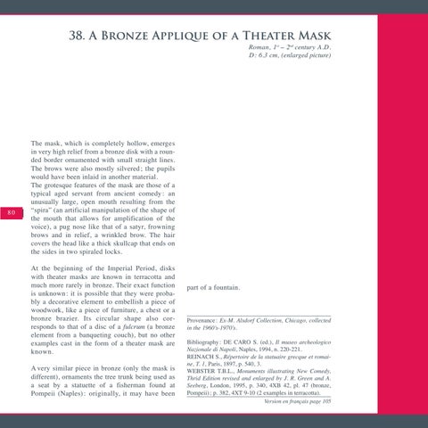 38. A Bronze Applique of a Theater Mask Roman, 1s t – 2nd century A.D. D: 6.3 cm, (enlarged picture)
