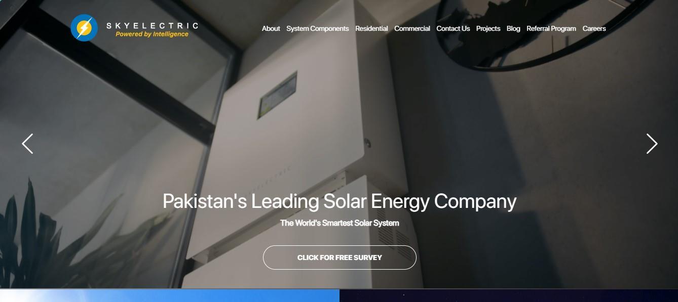 A company named Sky Electric was started in 2015 and is based in Lahore, Pakistan. They make solar energy systems that are specifically designed for use in homes, businesses, and factories. They sell