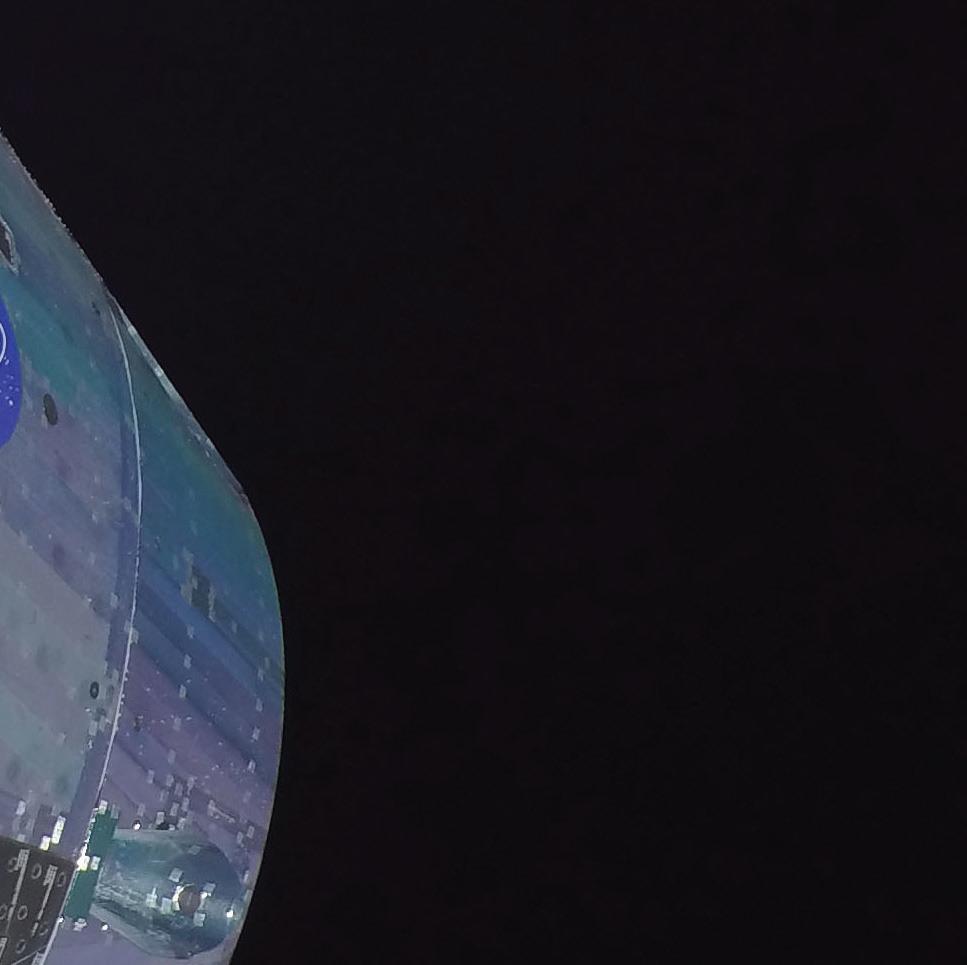 The Orion capsule from NASA’s Artemis 1 mission, with the moon and Earth in the background.