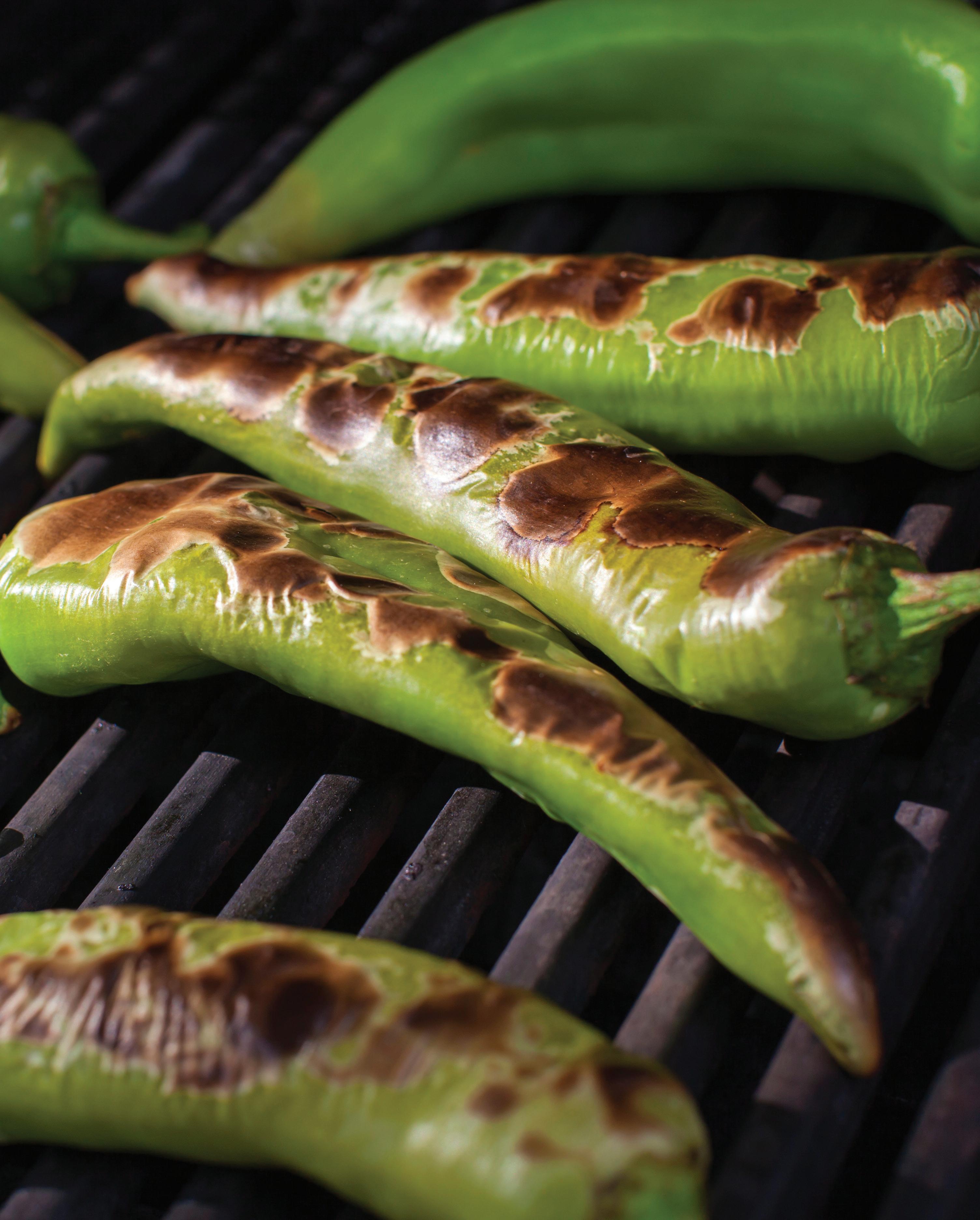 The crisp fall air and the smell of green chile roasting always remind me of walking home from school, where—about three streets from where I grew up in Santa Fe—I could smell the chile roasting in our backyard. When I got home, I would find my two grandmothers, Grama Rosie and Grama Mona, roasting chile on several charcoal grills and going about it with such ease, enjoying each other’s company, playing canasta, eating sardines and sharing a beer. Life was good when you were the favorite of two Grama’s.