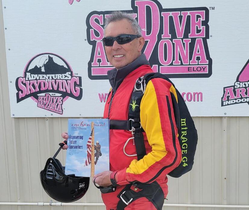 Congratulations to Anthony Peralta, an Otero County Electric Cooperative lineworker. He read his enchantment before skydiving over Eloy, Arizona, in salute to veterans.