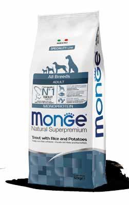 Monge come azienda italiana leader nel settore pet food e con 60 anni di esperienza, è il miglior alleato per nutrire e far crescere forti e sani i cani fin dalla prima delicata fase dello svezzamento, un partner ideale perché propone un prodotto formulato appositamente per le esigenze degli allevatori. Monge Natural Superpremium è una linea di prodotti ad alto contenuto di carne fresca, con ricette monoproteiche, Low grain senza patate e Grain Free senza cereali. Ogni ricetta garantisce altissimi livelli di proteine di origine animale con un’ottima appetibilità e digeribilità, con nutrienti essenziali per il benessere quotidiano dei nostri campioni.