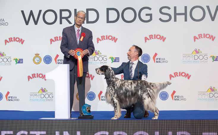 Contemporaneamente sempre venerdì, sabato e domenica si è svolto il WDS con l’alternanza dei gruppi in modo da dare la possibilità agli espositori di poter essere giudicati in due giorni vicini. Il numero di soggetti iscritti è stato di circa 7.600 cani. A Francesco Cochetti è stato riservato l’onore di giudicare il gruppo 9 Giovani. Nell’evento di questa lunga settimana spagnola, quindi, circa 15.600 soggetti, si sono avvicendati nei vari ring. Riassumendo, quindi, la giuria italiana era composta da Barbara Zanieri, Fabrizio La Rocca, Francesco Cochetti, Massimo Inzoli, Giovanni Morsiani e Claudio De Giuliani. Un bel numero che dimostra ancora una volta di più la stima che la scuola cinologica italiana ha nel mondo. Una giuria “mondiale” con rappresentanti che provenivano da quasi tutti i continenti ma, purtroppo, la pandemia e la guerra hanno limitato gli spostamenti da qualche Paese. Il Best in Show è stato giudicato da Rafael Malo Alcrudo quale coronamento di una vista spesa a servizio della Real Sociedad Canina de España, prima come allevatore e poi come giudice.