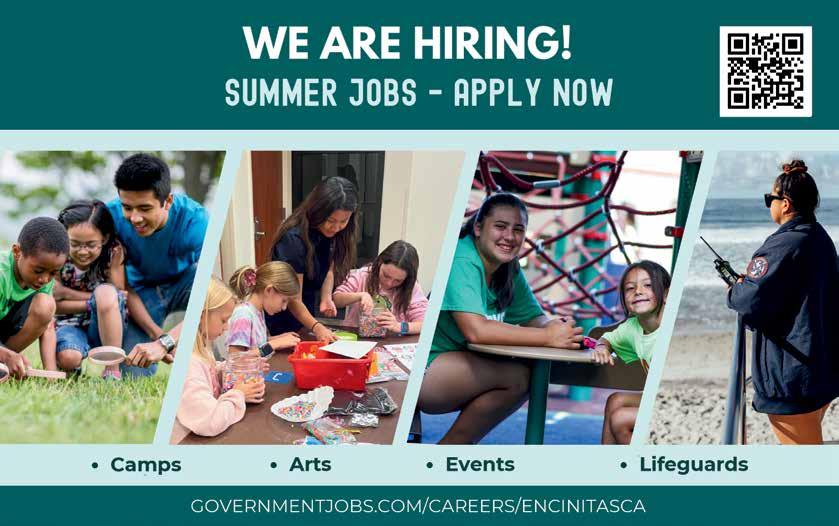 Join in on the fun this summer in this non-competitive beach program, focused on learning and fun. Participants are taught beach safety and awareness, basic first aid, marine life awareness, water etiquette, teamwork and engage in plenty of play! Beach Kids will emphasize confidence building and selfesteem while playing games in a fun, beach environment. Visit www.encinitasbeachkids.com for more information.
