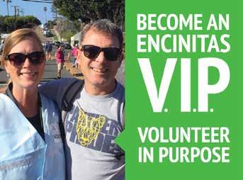 The benefits are endless and include developing new relationships, learning new skills, and improving health and wellness. The City of Encinitas offers a variety of V.I.P. opportunities to include programs for Adults 50 +, Events, Cultural Arts, Green Initiatives, Parks, Trails, and more. Apply now to start making a difference in Encinitas today. Visit www.EncinitasCA.gov/Volunteers