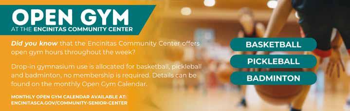 The City’s Senior Center would not be able to do what it does without the generous partnerships it has built within the community. A variety of sponsorship packages are available. If you would like to partner with the Encinitas Senior Center, please call (760) 943-2250 or email aeustace@ encinitasca.gov for a sponsorship application.