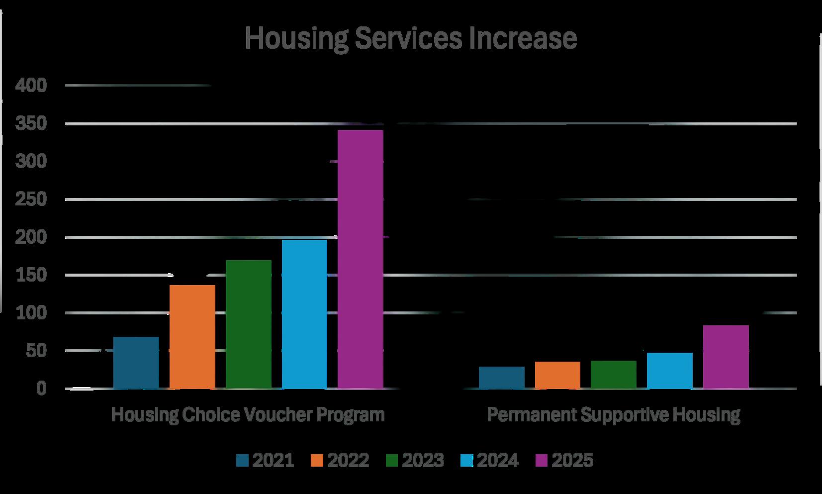 Permanent Supportive Housing has also increased substantially, addressing the critical housing needs of individuals with serious mental illness amid a reduction in grant-supported funding.
