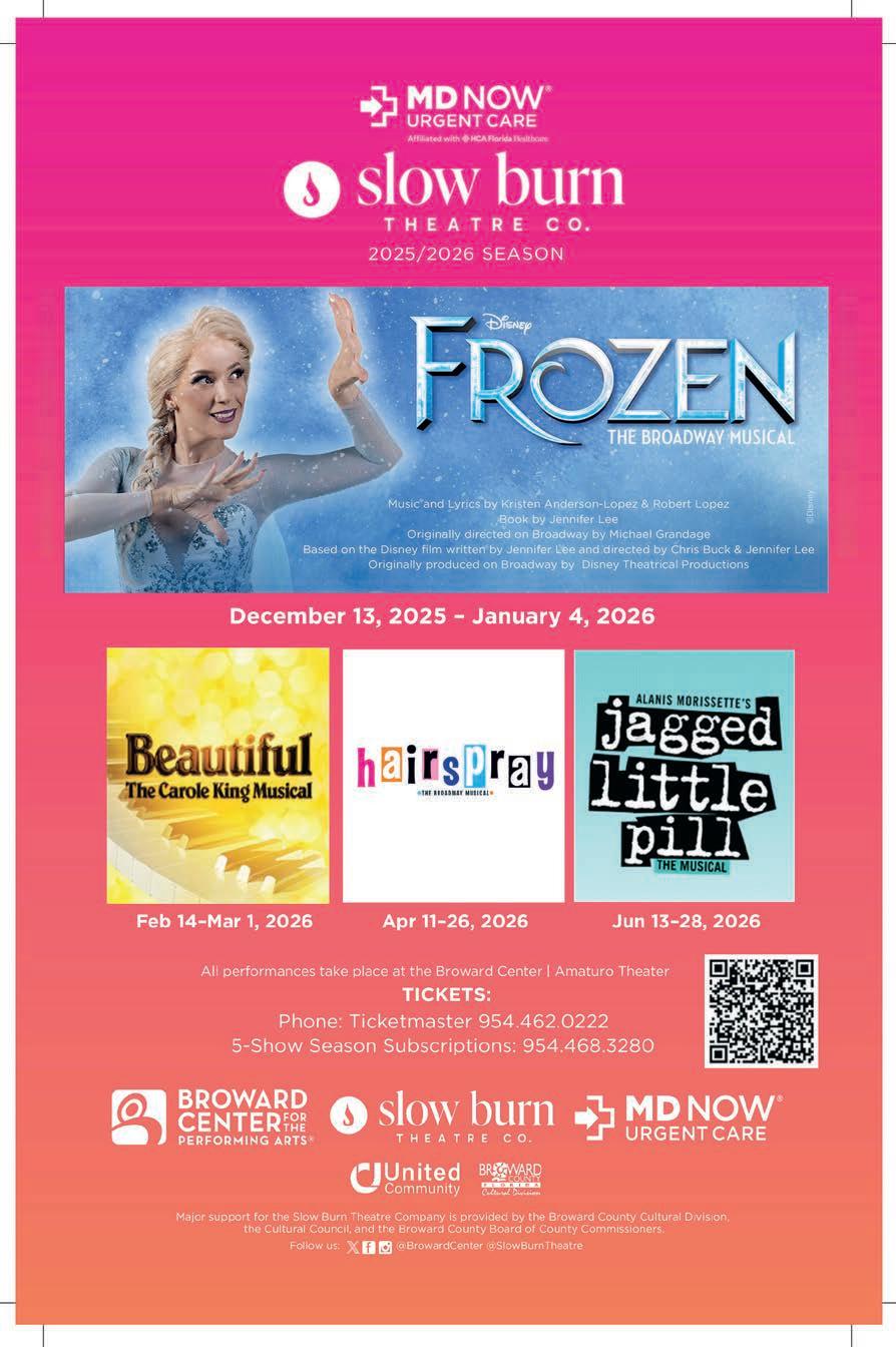 The programs of the Broward Center and The Parker are sponsored in part by the State of Florida through the Division of Arts and Culture and the National Endowment for the Arts, and by: The Cornelia T. Bailey Foundation • Bank of America Charitable Foundation • The Batchelor Foundation Community Foundation of Broward • Frederick A. DeLuca Foundation • Florida Panthers Foundation Florida Theatrical Association • Charles F. and Esther M. Frye Foundation • Funding Arts Broward, Inc. Genesis Inspiration Foundation • Gore Family Memorial Foundation Trust • Mary Jane Harlow Charitable Trust City of Hollywood • JM Family Enterprises • Robert Wood Johnson Family Charities • Kapila Family Foundation