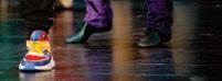 The costumes were not only about aesthetic choices but also functionality. Young’s designs had to endure the wear and tear of Broadway performances, especially given the show’s physical choreography. The challenge was particularly evident when working with athletic materials like those used by brands like Nike and Adidas. “In some ways, Nike and Adidas were the bane of my existence ’cause they made their clothes too well,” Young laughed. The fabrics designed to withstand daily physical activity made it difficult to break down the costumes to look wornin and vintage, but through persistence and a dedicated team, the costume team maintained the vibrancy of modern fashion while appearing lived-in and real. Young’s attention to detail also extended to the supporting characters. “I wanted people to be able to look at each individual character and see a potential story in the depth and layers of their costume,” she explained. “In the players, when everyone is gathering to read the end of Shakespeare’s play and put on their show, they’re in their rehearsal costumes. A lot of the actors, the players, have T-shirts, sweatshirts, and old show swag from Shakespeare’s other shows.” These “rehearsal T-shirts” subtly reflect their connection to the history of Shakespeare’s work, adding another layer of storytelling to the design.