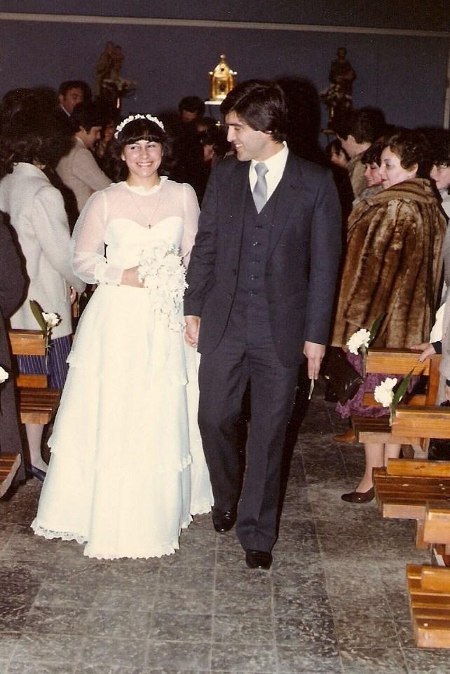 El año 82 nos casamos con Eduardo. Nos conocimos gracias a un encuentro que organizó la Quena del Valle (compañeradelcurso)con unos amigos. Pololeamos siete meses y nos casamos. De ese encuentro salió el matrimonio mío con Eduardo, y un poco después el de la Quena con Ramón.