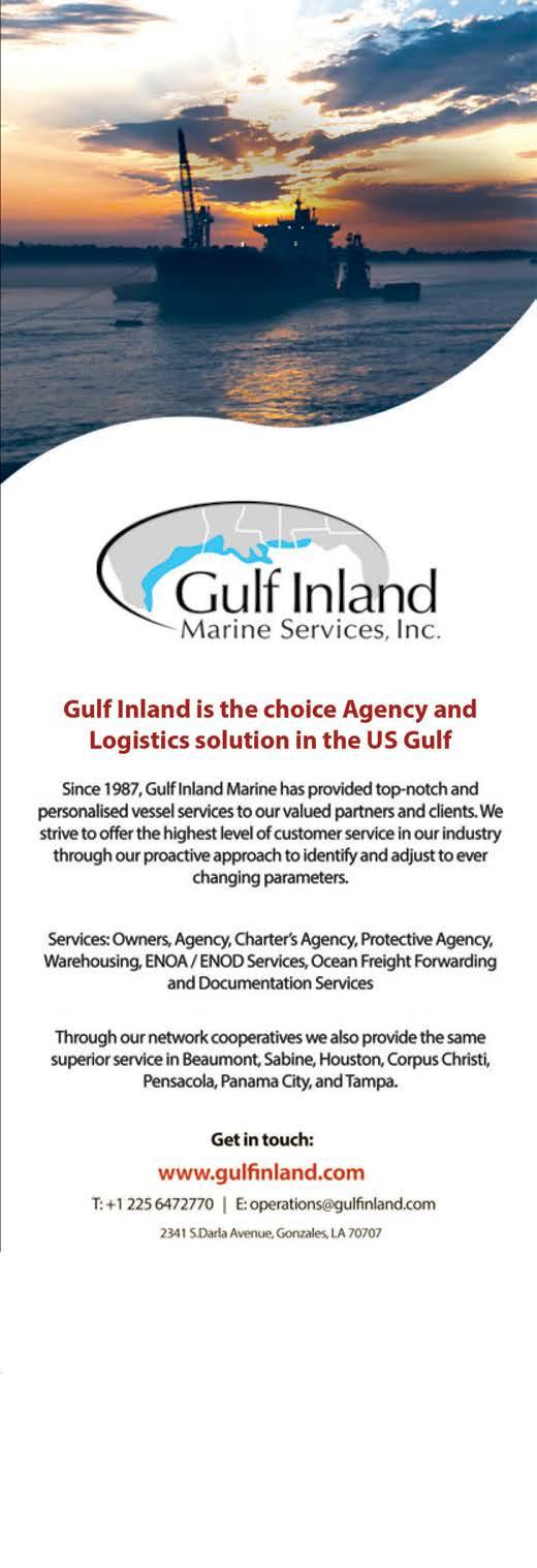 The Port’s Bulk Terminal No.1 provides 7 acres of dry bulk terminals at the Rose Bluff Cutoff along the Calcasieu Ship Channel and can accommodate 2 vessels for loading and unloading. Furthermore, the terminal also operates 2 travelling ship loaders and 2 travelling clamshell bucket unloaders, these include a pet coke ship loader which can facilitate 3,200 short tons per hour, and a calcined coke ship loader with a capacity for 1,200 short tons per hour. Bulk Terminal No.1 provides vessel-tovessel, vessel-to-truck, or vessel-to-open storage solutions. Consequently, the terminal processes more than 3.1 million short tons of dry bulk material annually which includes petroleum coke, calcined coke, barite, rutile, and other dry bulk commodities. In addition, the port is home to Bulk Terminal No.4 which deals in aggregates and is leased to a private company. The Terminal has a 251ft dock face, which can extend to 355 ft with dolphins and has a depth of 35 ft to help move more than 1 million metric tons of imported aggregate annually.