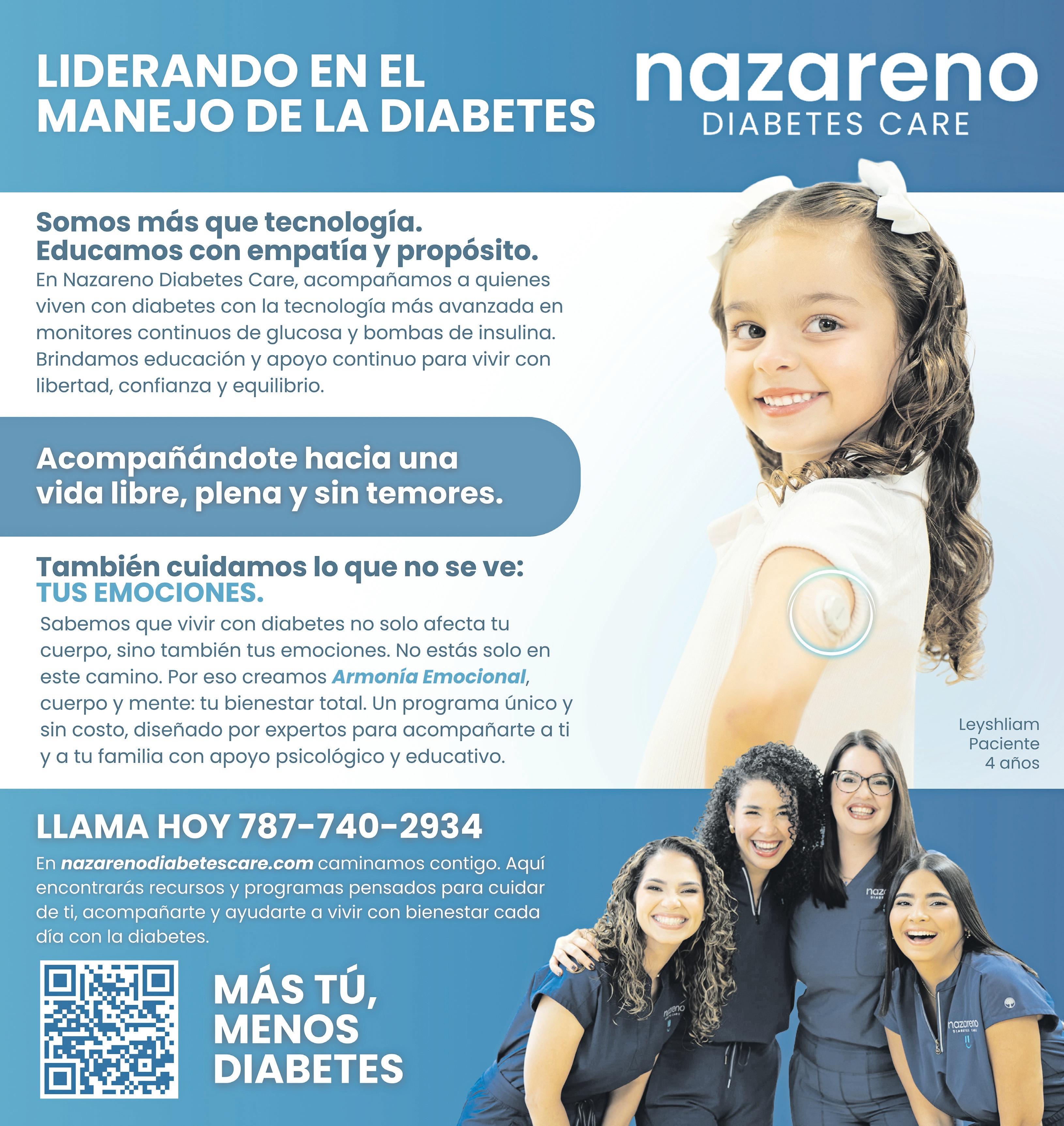 Estas acciones deben estar respaldadaspor políticaspúblicas sólidas, impulsadas desde la legislatura y otras entidades gubernamentales ycomunitarias.Yclaro,promoverestilosde vidasaludablessiguesiendouna herramienta poderosa, pero estas recomendaciones deben adaptarse a nuestracultura y realidad.Necesitamosalimentos saludables quetambién sean sabrosos, espacios seguros paraejercitarnosy convivireiniciativas educativasefectivas, como las que impulsa la APD. La diabetes en Puerto Rico no es una estadística sin rostro. Es unahistoria quese repiteen hogares, salas de espera y hospitales. Aunque los números pueden parecer alarmantes, también representan una oportunidad para actuar,educar y prevenir. Al final deldía, no se trata solo dereducir porcentajes, sino de transformar vidas, deconstruir unsistema desalud accesible,justo yresiliente para cadapersona. Porquedetrás de cadanúmero, hay un rostroy detrásde cadarostro, una historiaque mereceser escuchada.