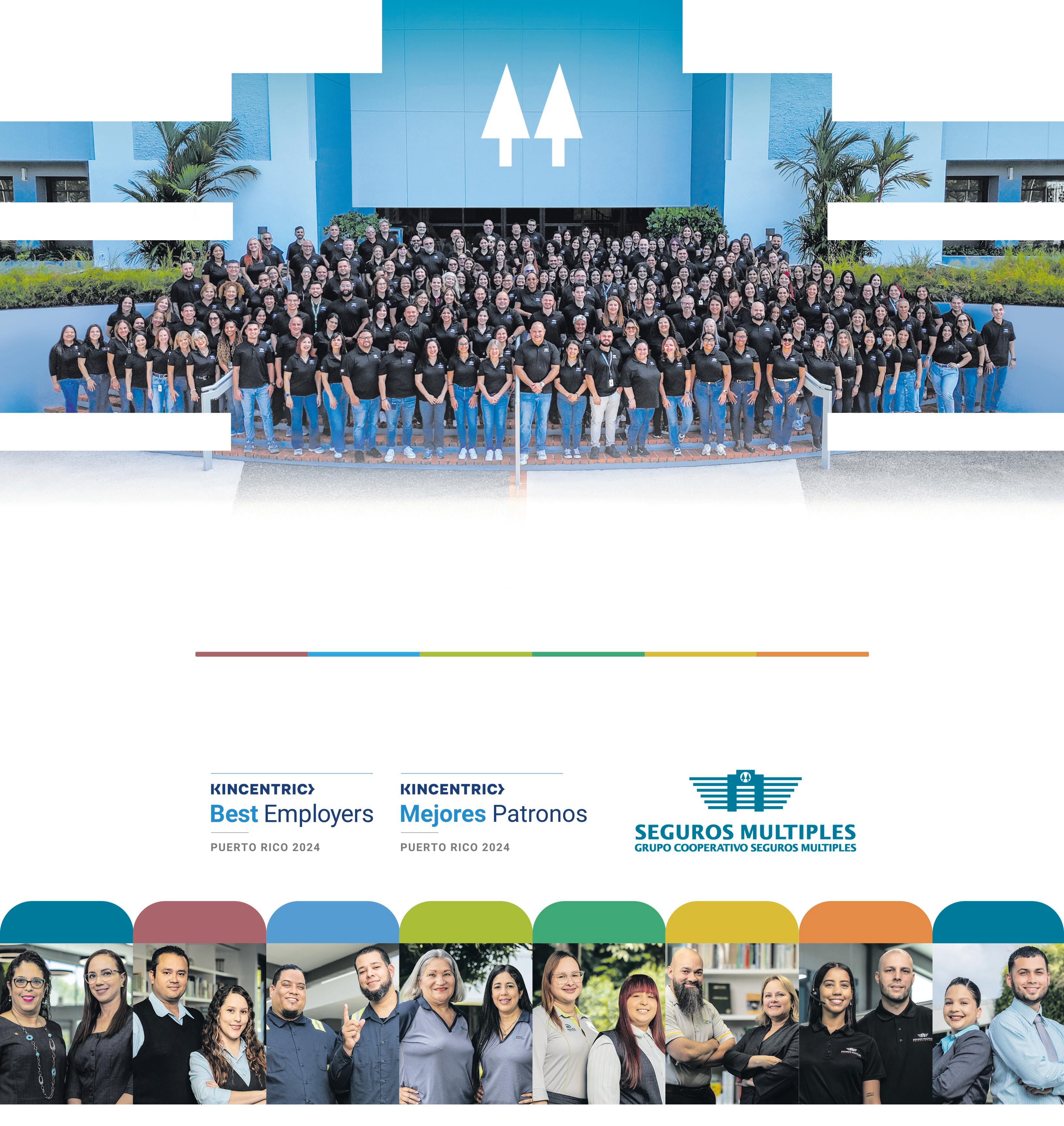 n Grupo Cooperativo Seguros Múltiples, con sede en SanJuan, la propuesta de valor al empleadoincluyeofrecimientos que incentivansu educación, desarrolloy bienestarmásallá del ambiente laboral. Se trata de ofrecimientos que están disponibles paralos 550 empleados distribuidosentre lasocho empresasqueconforman el conglomerado: Grupo Cooperativo Seguros Múltiples, que es la matriz; Cooperativa de SegurosMúltiplesdePuertoRico,empresadesegurosdepropiedad ycontingencia; Green