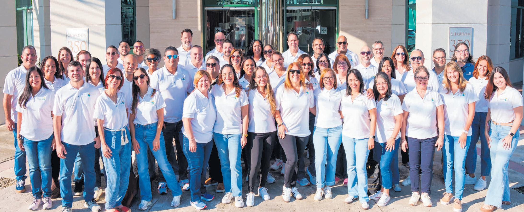Al frente, de izquierda a derecha: Eduardo Pagan, VP & GM Caribbean; Ana Medellín, Sr. HR Manager, Caribbean; Peter Santiago, VP Commercial, junto a su grupo de empleados.