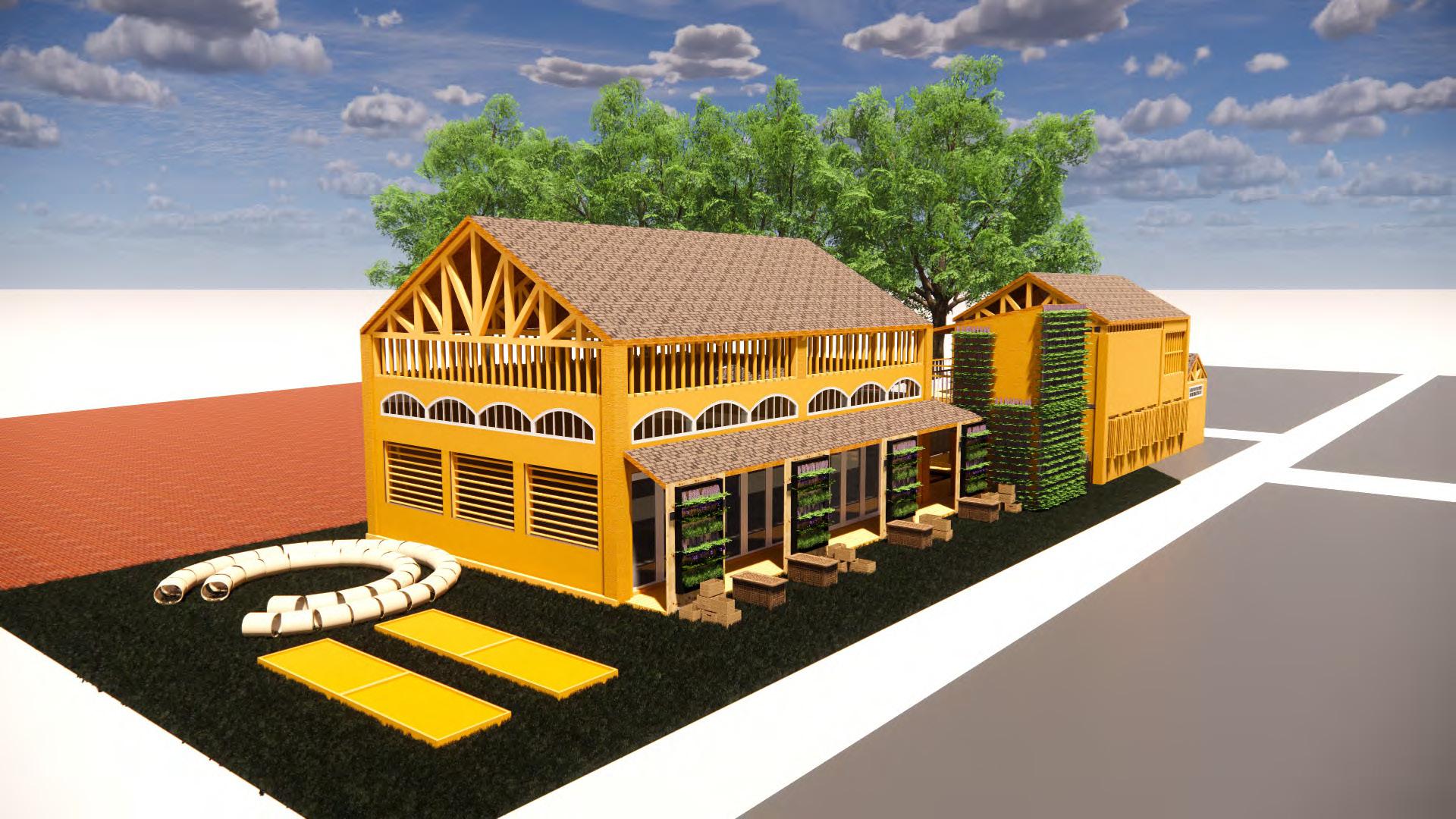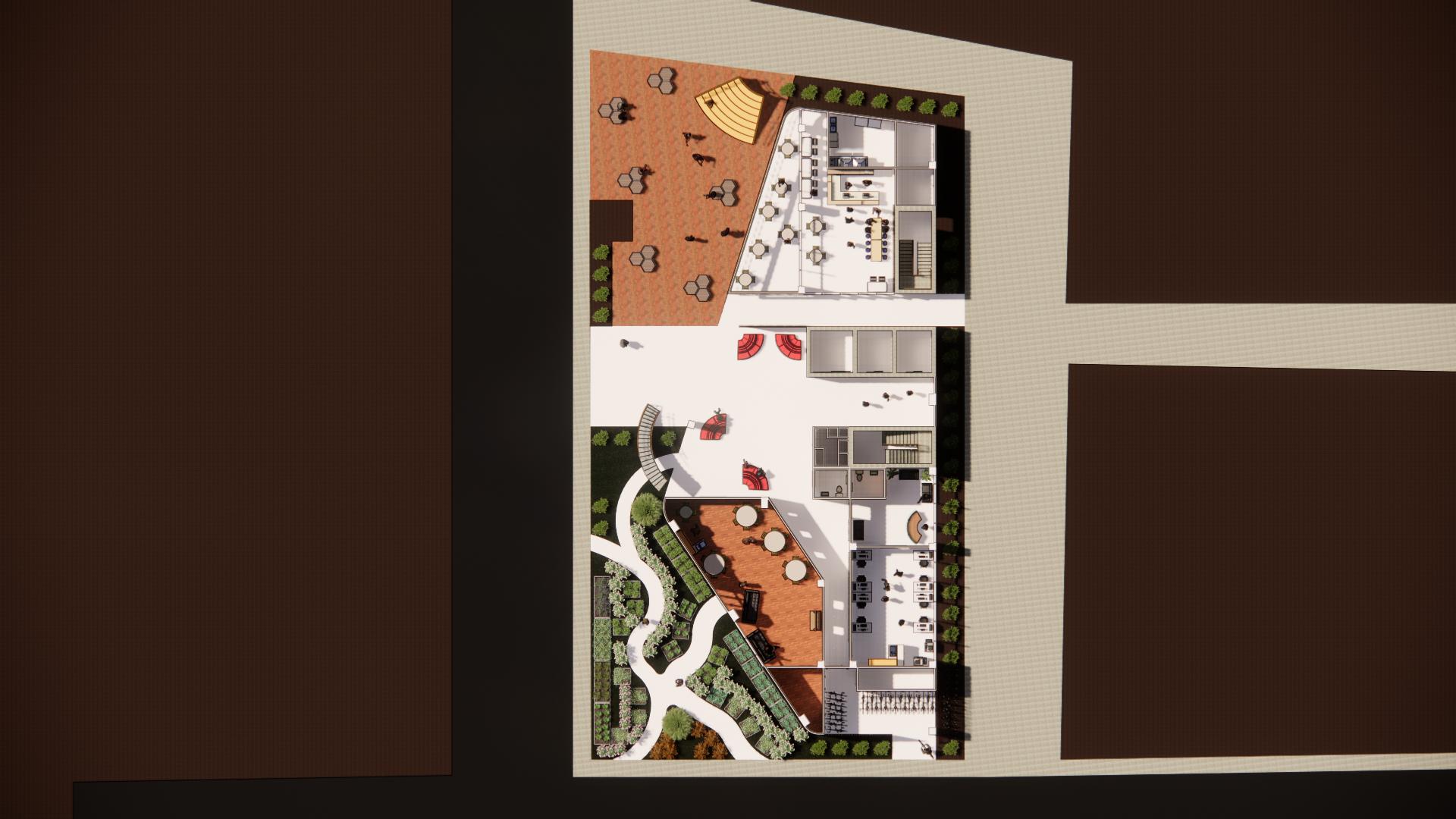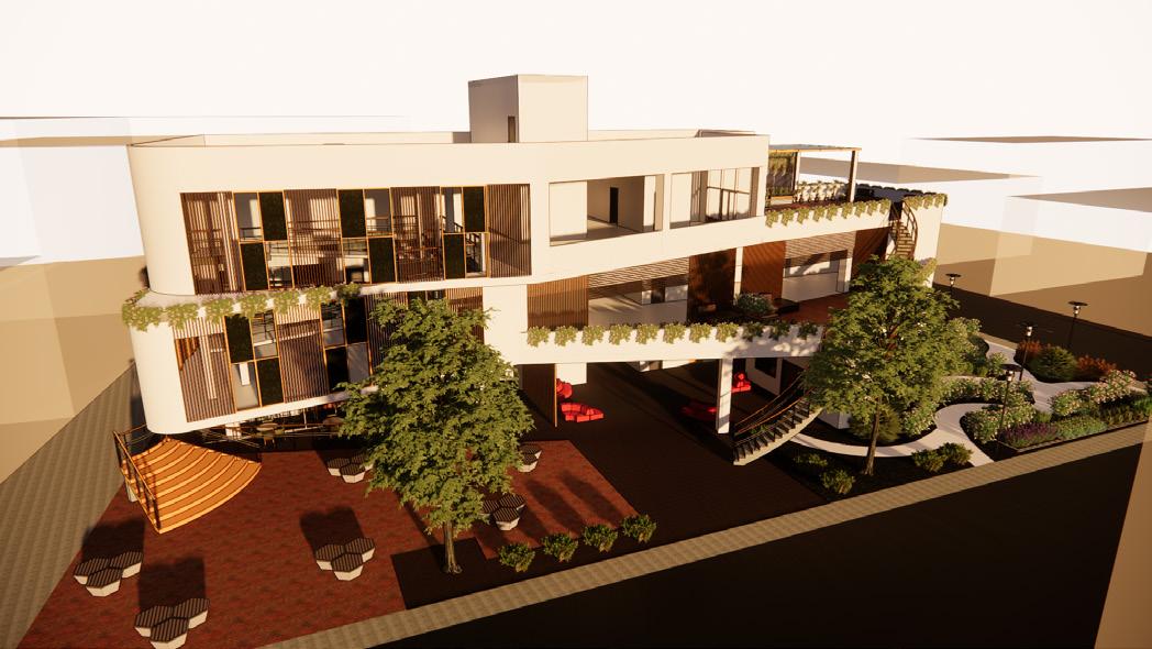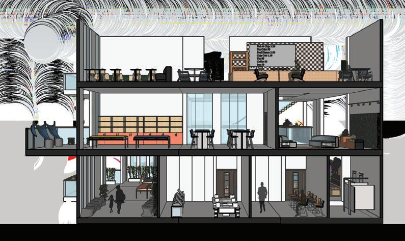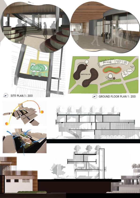 The space's purpose is to nurture users in an environment that promotes sustainable practises. At the same time, the ability to foster positive social interaction while also providing speci�ic nature-based measures that can relax and stimulate users' senses. As a result, there is more interaction and learning throughout the course. Users can explore the open space on the �irst �loor, which contains exhibition stands, public workshop events, and even private classes that educate users on the practise of sustainability. As they ascend to the second �loor, they can view additional exhibit displays containing knowledge and information, as well as walk around and admire the green spaces and commune in the resting areas. Everyone can use the private classrooms and mini workshops on the second �loor. Lastly, users will be able to eat and dine at the large open space cafe on the third �loor while interacting with their family, friends, or lovers. There is also an open mini workshop and an open space bridge for users to rest and admire the landscaping designs. The learning loft provides a bright and motivating space for users to grow and learn, similar to how plants nurture healthily under proper care of natural elements, with natural lighting, green spaces, and natural ventilation.