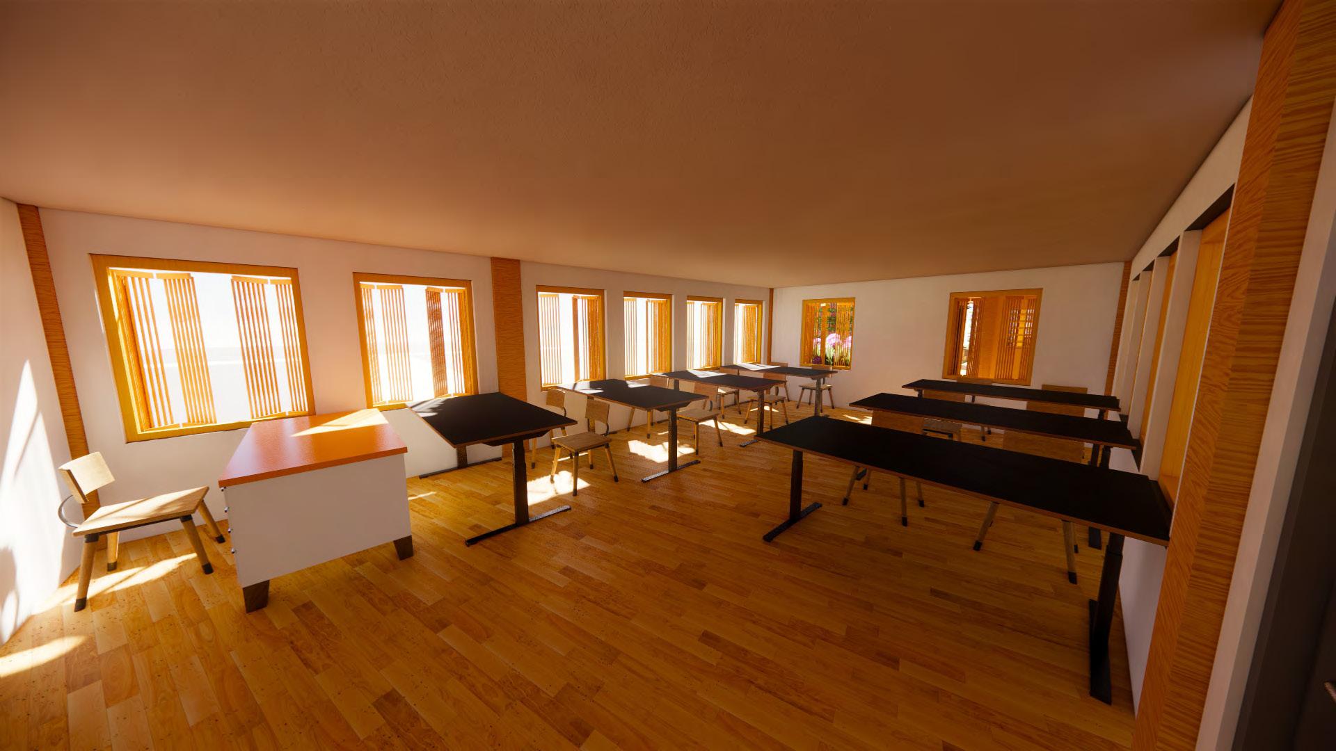The first strategy is associated with tegrate the usage of bamboo curtain dows to distribute daylight into usage of many openings allow the avoiding high usage of electricity To bring as much light into the building story windows and high openings light the space evenly.